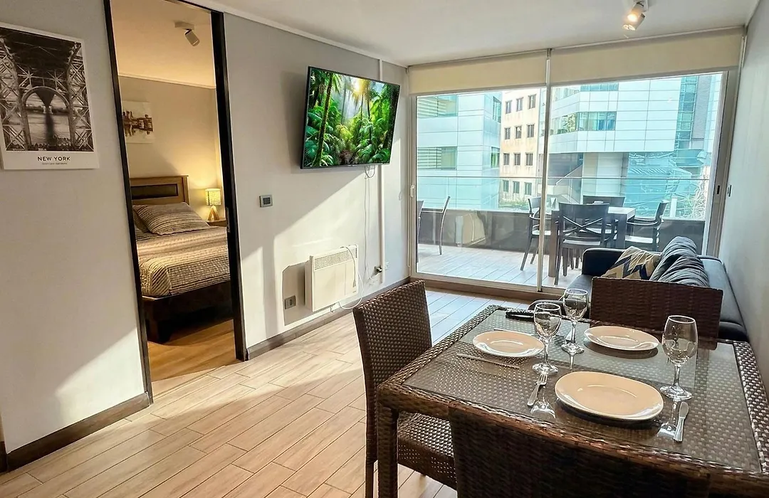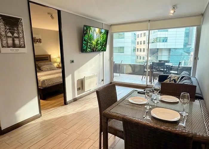 The 1-room A Pasos De Clinica - Parking - Cama King - Wifi Santiago apartment lies in a residential area, 2.4 km from the Alto Las Condes and around a 10-minute ride from Golf Club. Access to a private swimming pool ensures a more relaxing stay.